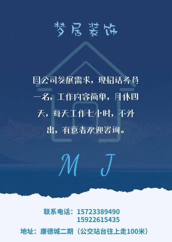 招聘话务员数名,限女性,上六休一 |