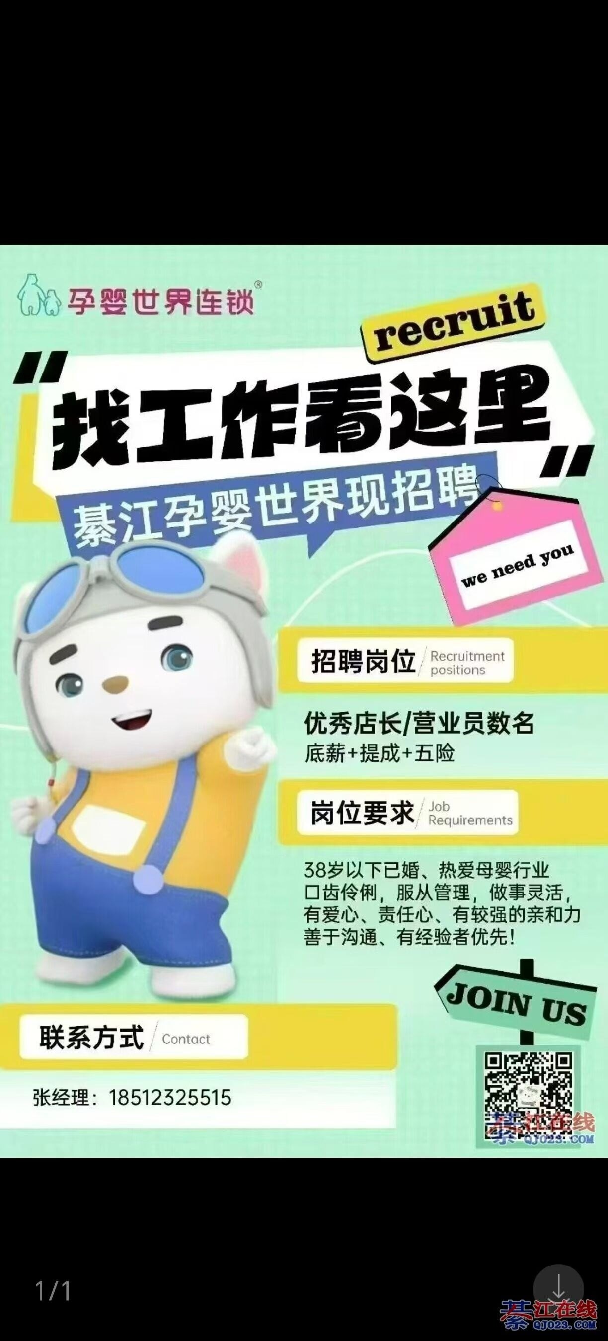 找工作看这里,綦江孕婴世界连锁招聘啦 |