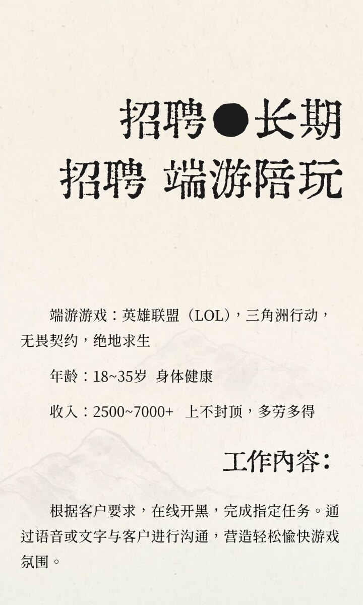 招聘●长期招聘 端游陪玩