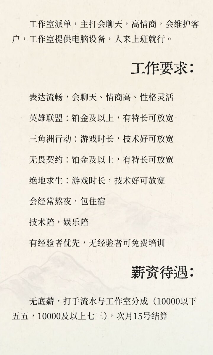 喜欢玩游戏,能熬夜,想赚钱,不摆烂,能长期干的小伙伴,直接报名私聊吧,期待您的加入!