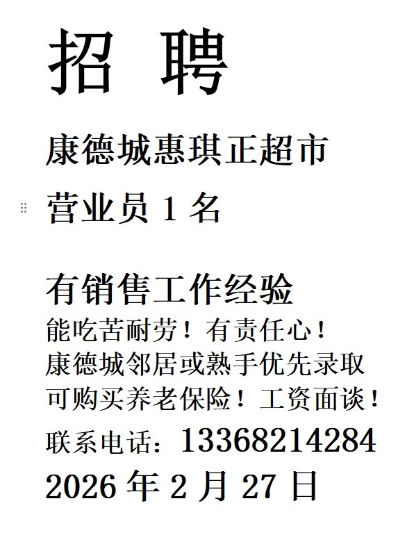 康德城惠琪正超市招聘 |